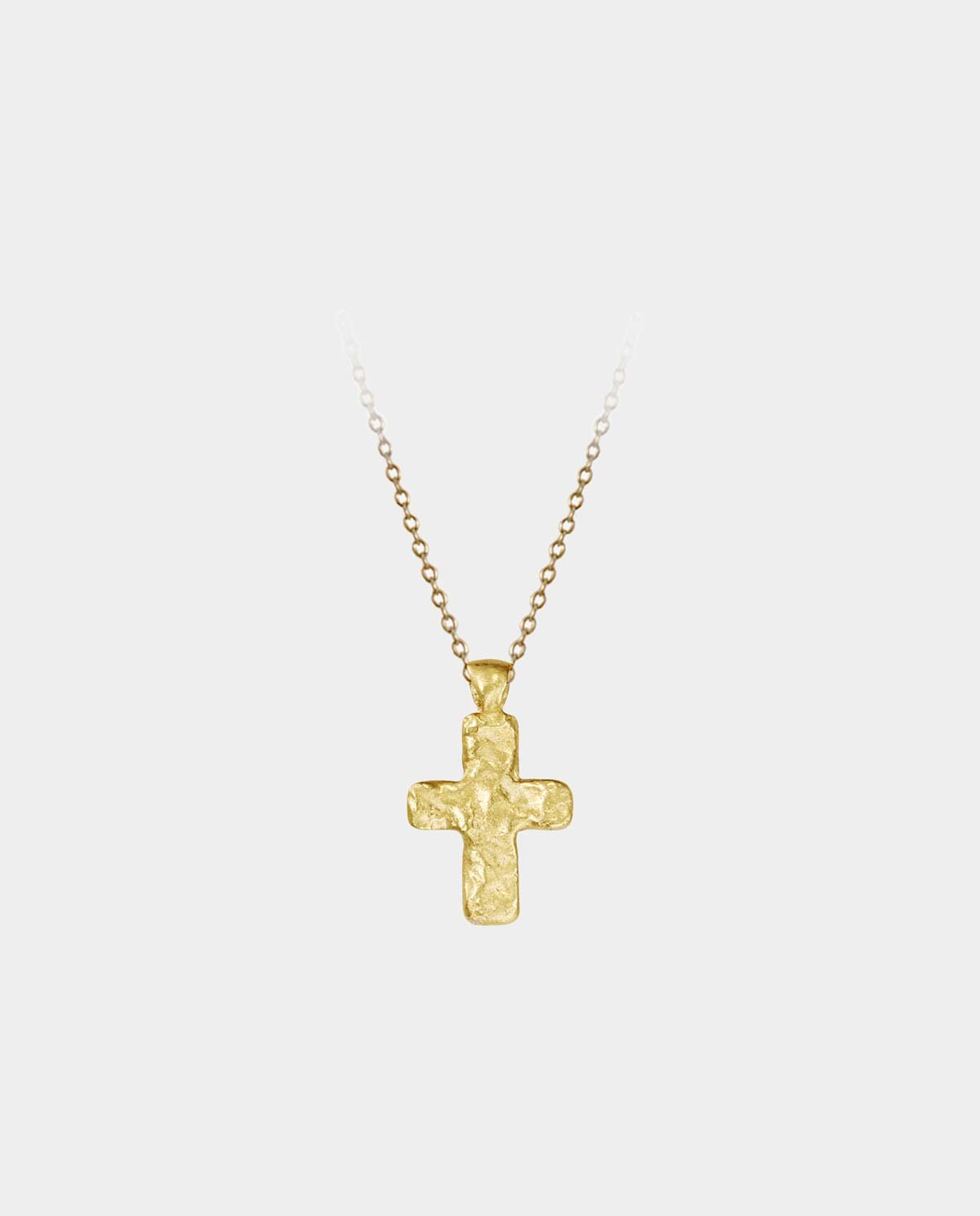 The necklace pendant is designed with inspiration from the medieval cross. Back then, wearing a cross as jewelry around the neck was often associated with long and dangerous pilgrimages. It was therefore important that the cross could withstand the rigors of travel. Therefore, the crosses were designed with short and wide arms, as opposed to the slender crosses used later.